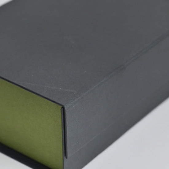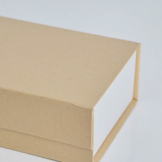 Made from 100% recycled rigid board and wrapped in smooth art paper inside and out. Ships flat and assembles easily in seconds. Personalize it in our 3D tool with foil or UV finishing and place your logo exactly where you want it. Sustainable. Stunning. Smart.